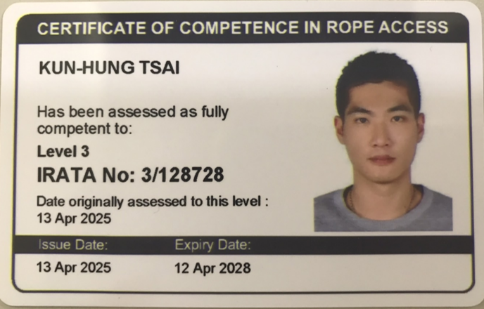 依國際規範執行高空作業,雙重保護、定期訓練與複訓。
